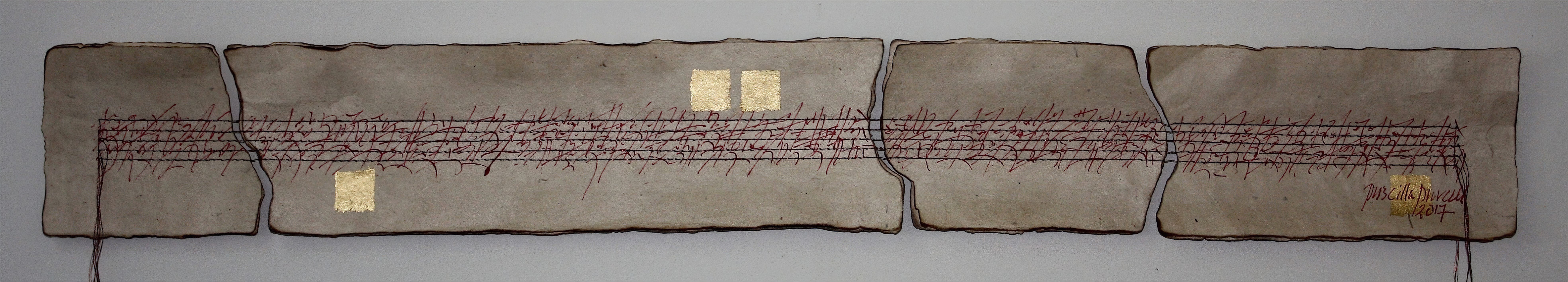 THEME: Broken pieces, unbroken; thread; continuum; timeline; fragments of knowledge; ancient texts; connections, disintegration; detached; unfinished; incomplete; fracture; sever; tear apart.